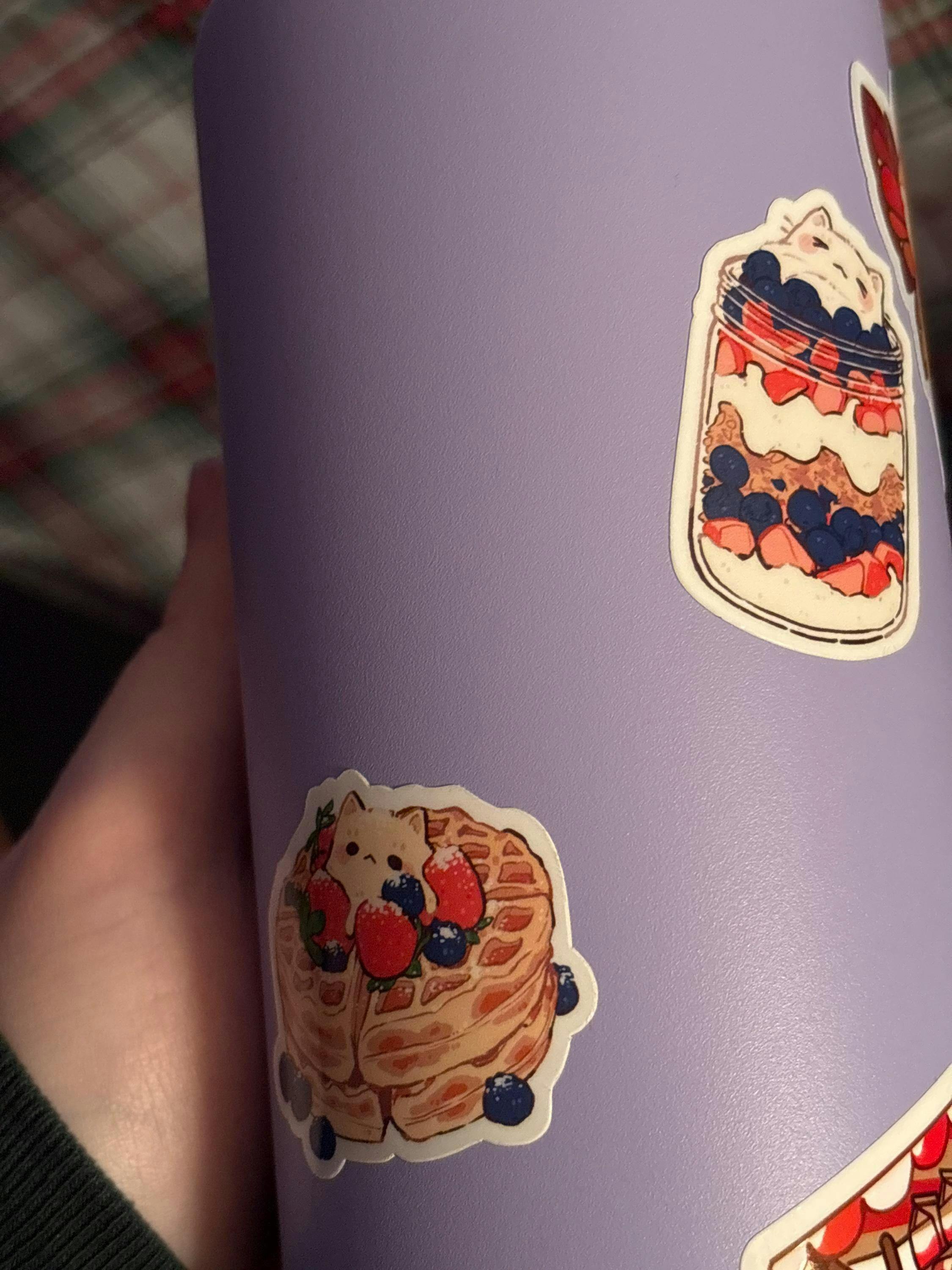 Our handmade and hand drawn sticker sheets are made out of quality glossy vinyl. They are wonderful for laptops, PC cases, phone cases, water bottles and more! The small size is perfect for journaling, scrapbooking and notebooks.