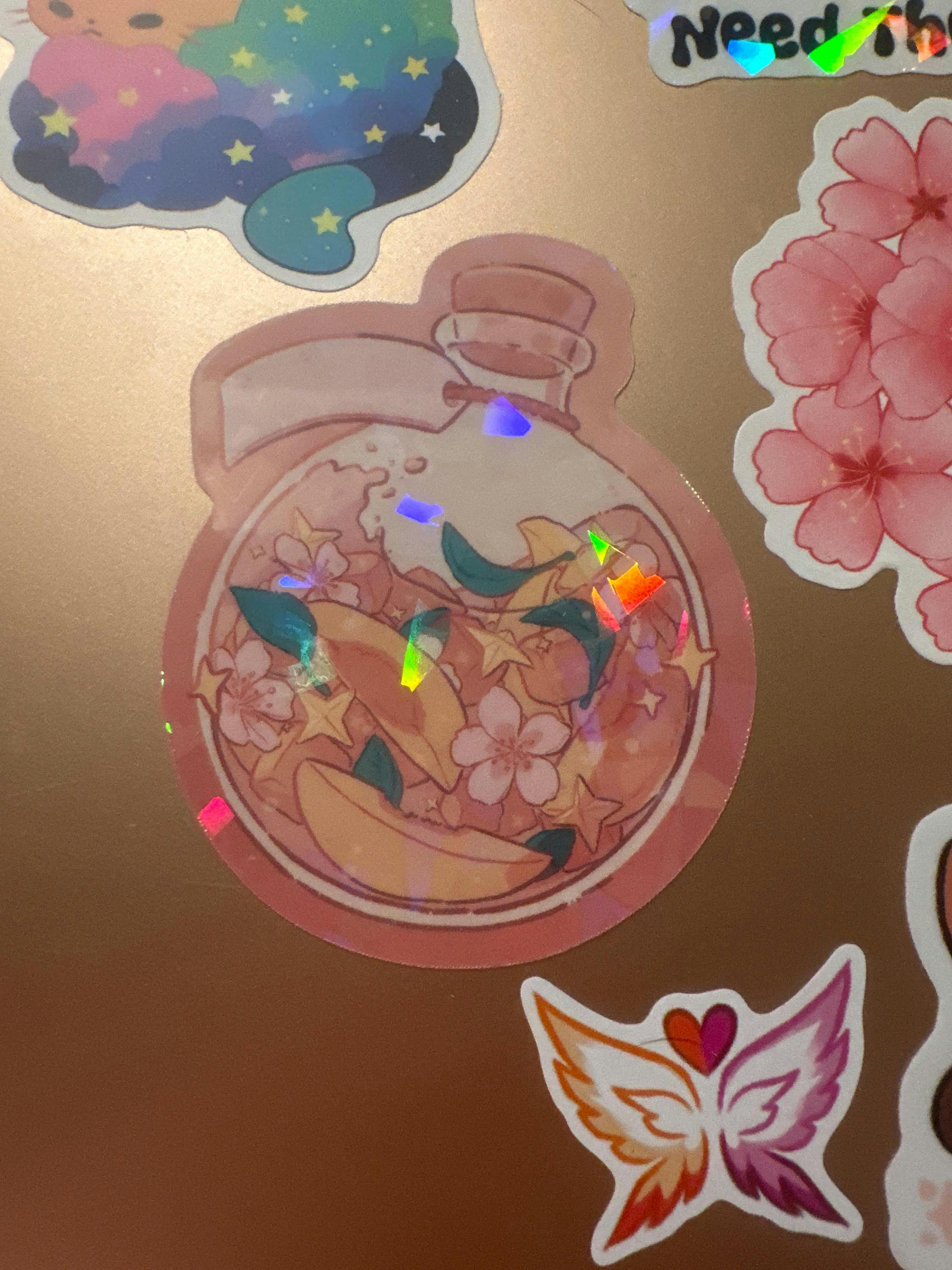 Cute Sticker Holographic | Aesthetic Sticker Pastel Pink Sticker Durable Stickers Stationary Sticker Laptop Decal Glitter Sticker Sparkle